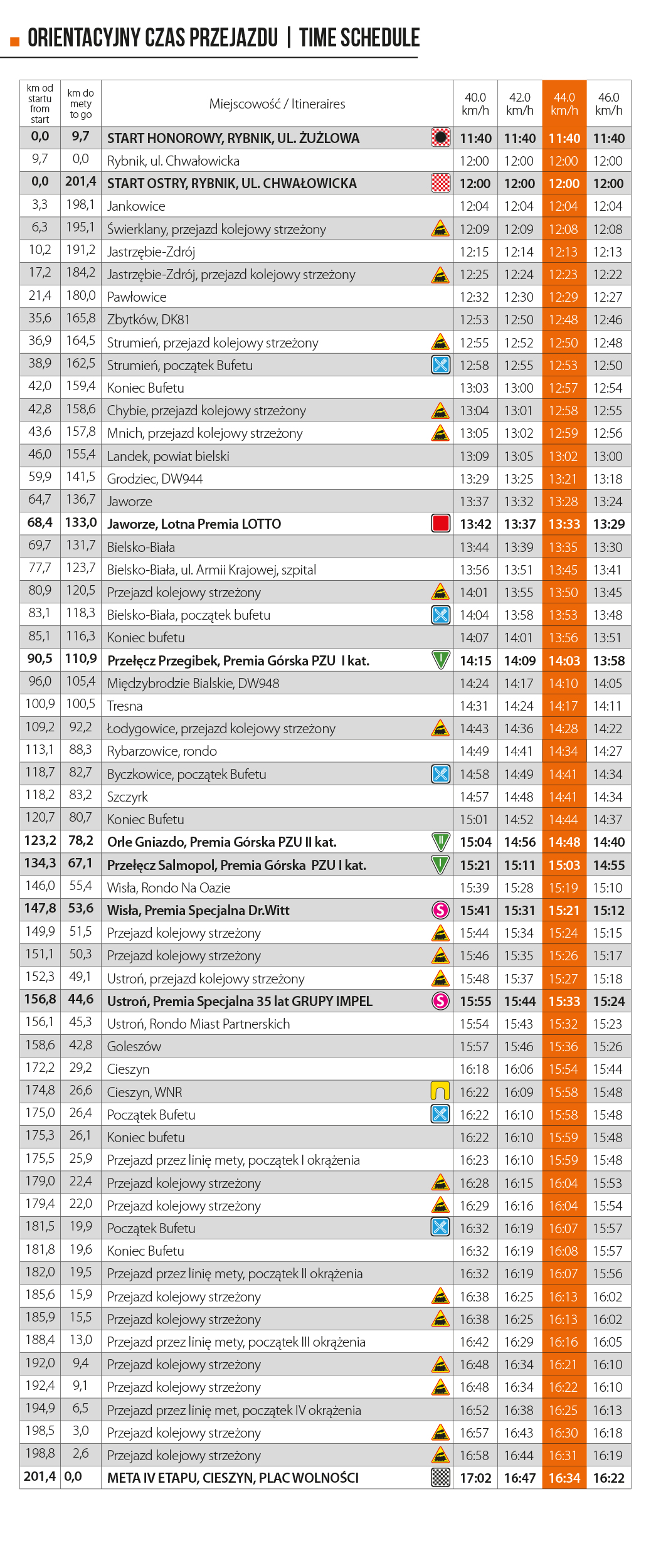 Wymienione wyżej odcinki będą całkowicie zamknięte na czas przejazdu wyścigu od ok. godz. 14:00 na Salmopolu, do ok. godz. 16:00 na Gahurze. Służby będą otwierały poszczególne odcinki po zakończonym wyścigu i odbiorze drogi przez wyznaczone służby.