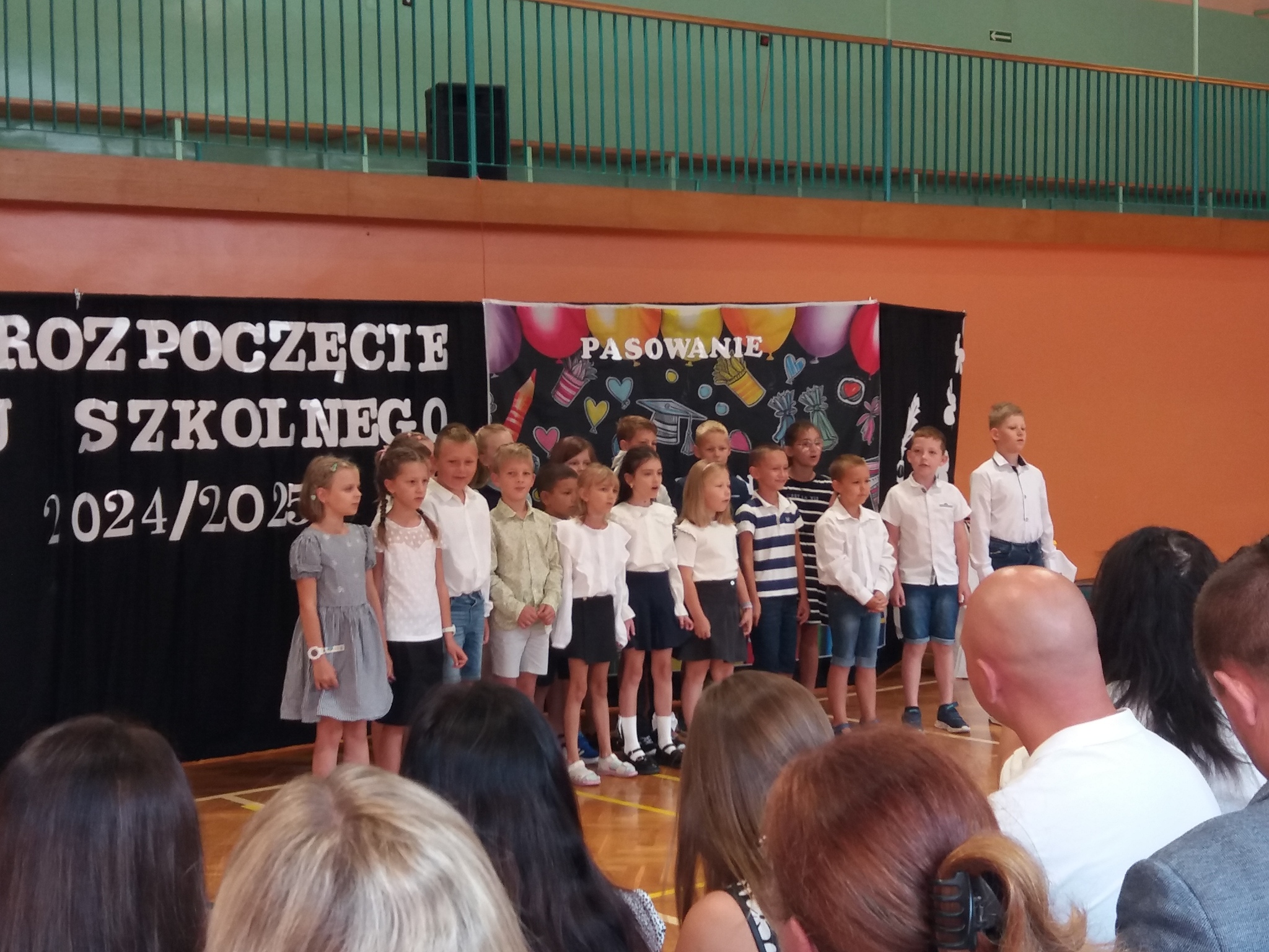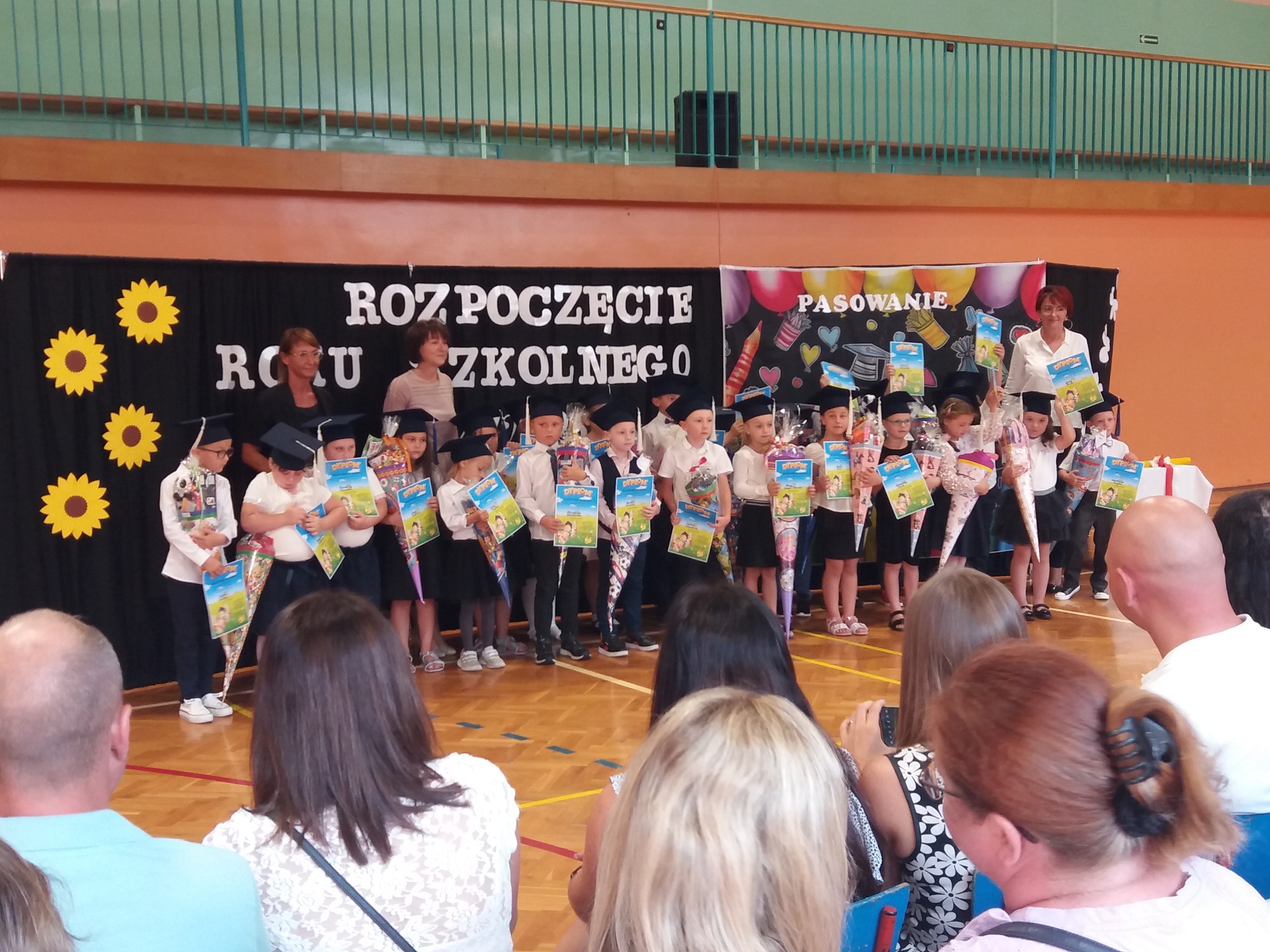2 września uroczyście przywitaliśmy nowy rok szkolny. Dyrektor szkoły przywitała uczniów, nauczycieli i rodziców, po czym odbyło się pasowanie pierwszoklasistów.