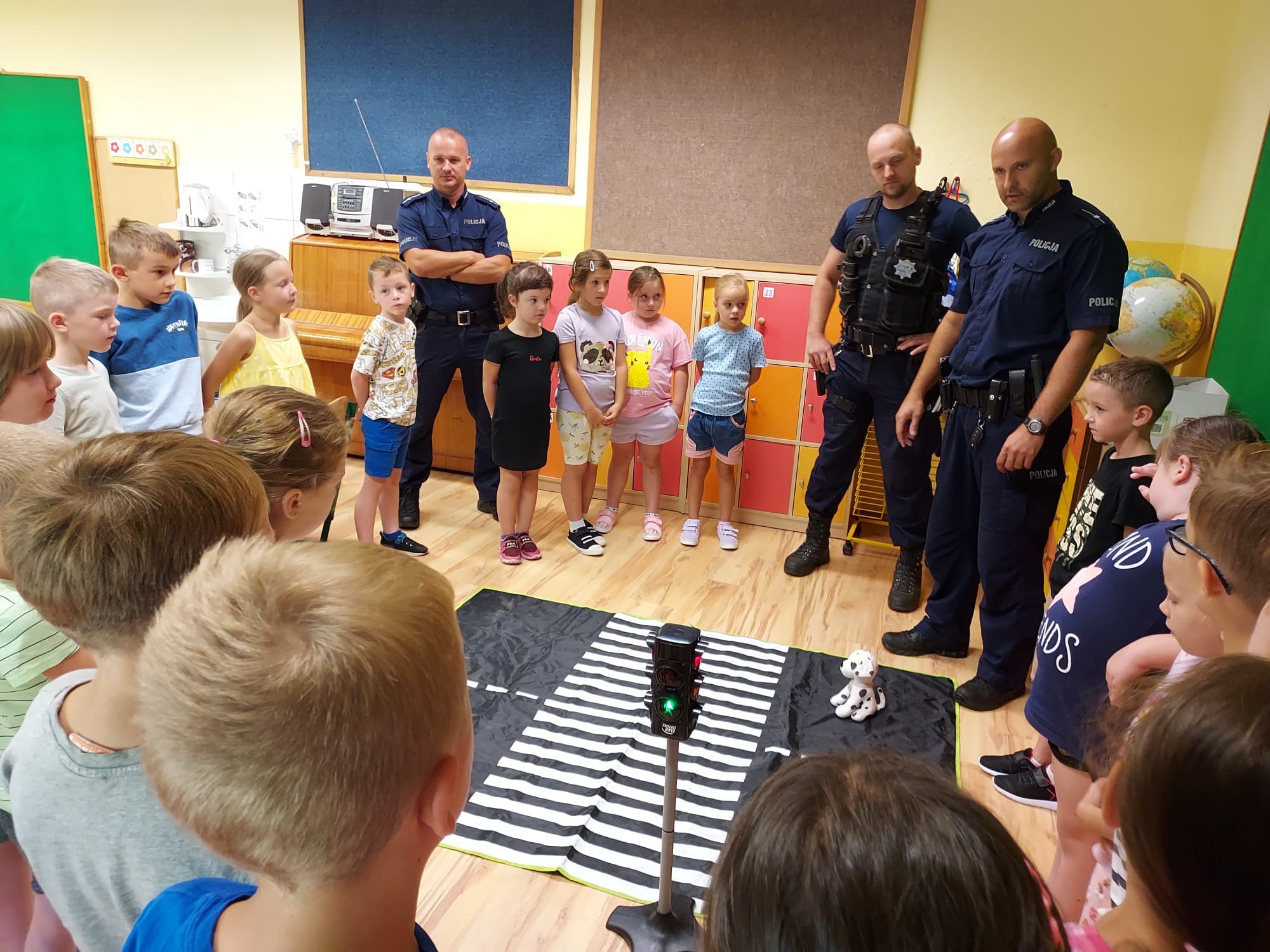 9 września uczniowie klasy pierwszej uczyli się zasad bezpiecznego zachowania na drodze, pod okiem wiślańskiej policji.