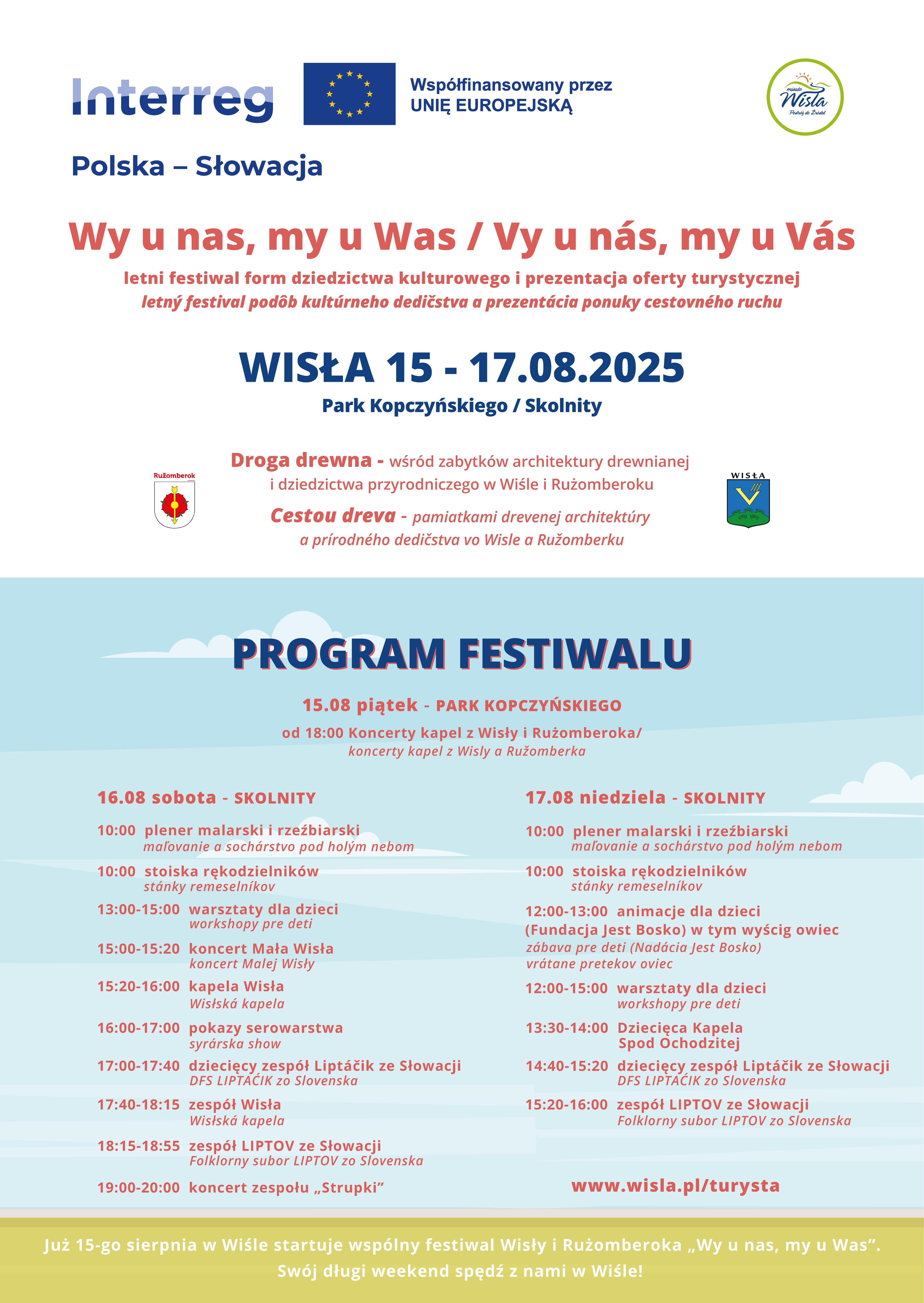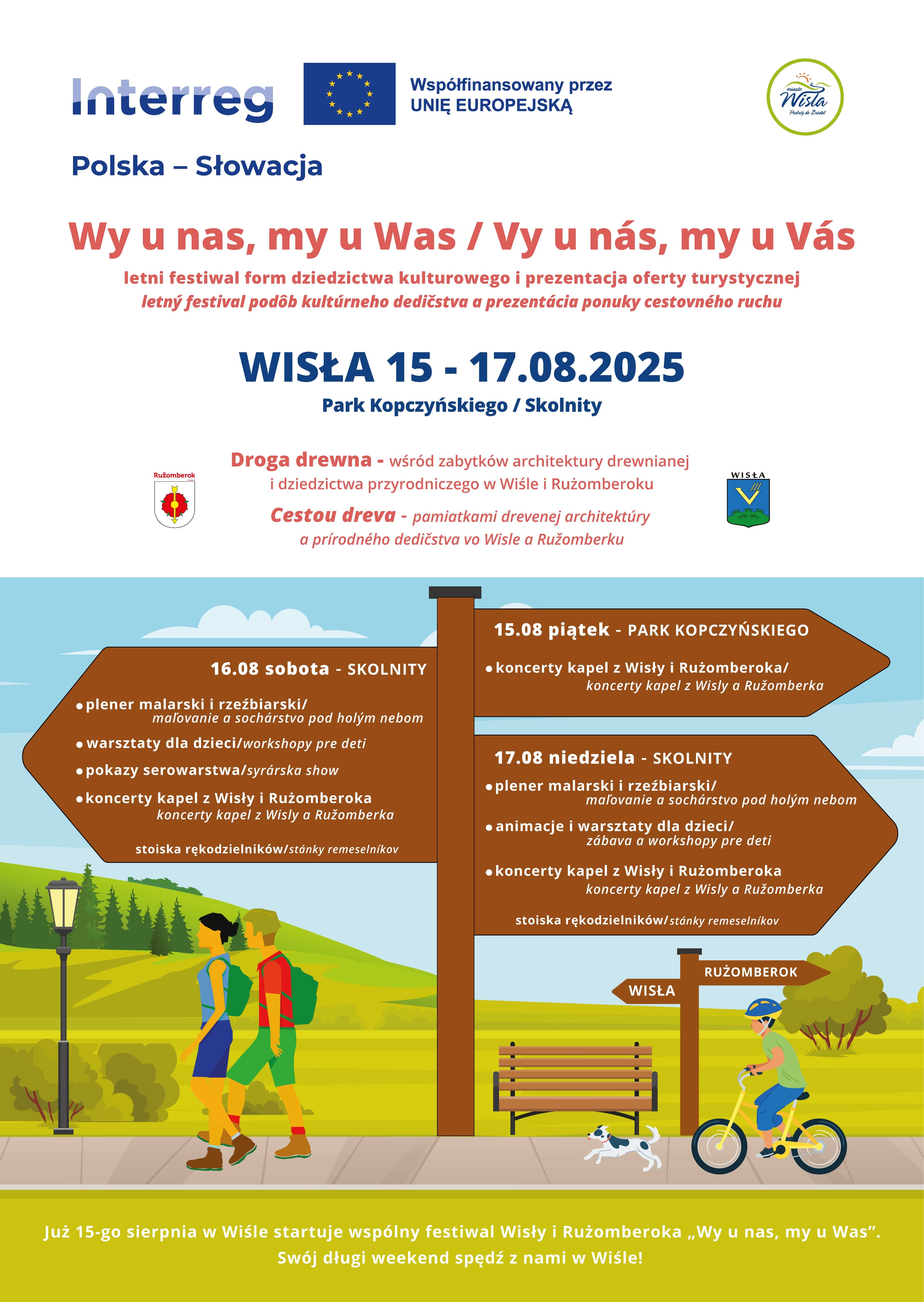 Wy u nas, my u was - letni festiwal dziedzictwa kulturowego i prezentacja turystyki odbywający się w ramach projektu "Drogą drewna - wśród zabytków architektury drewnianej i dziedzictwa przyrodniczego w Wiśle i Rużomberoku".