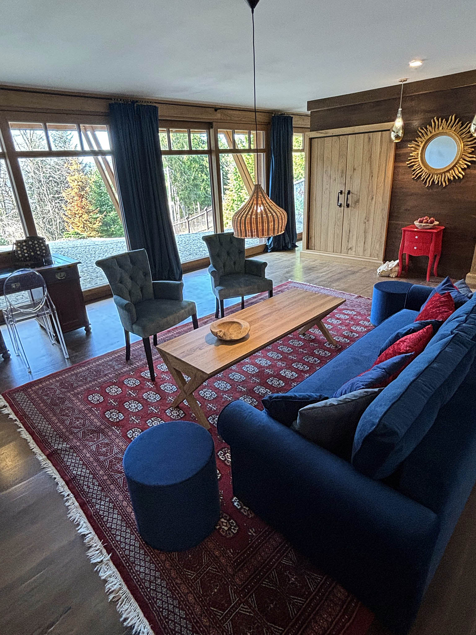Modernizacja starego Sfinksa przy jednoczesnym zachowaniu wszelkich walorów historycznych i estetycznych obiektu, oraz rozbudowie miała na celu uzyskanie przestrzeni dla nowych funkcji obiektu. Wnętrza zostały potraktowane ze szczególną troską i zaangażowaniem. Podstawowym zastosowanym materiałem jest naturalne drewno przeróżnych gatunków, stanowiące podłogi, meble oraz gdzieniegdzie sufity, co jest dość wyjątkowym zabiegiem dekoracyjnym. Dzięki pracy lokalnych rzemieślników, których należałoby raczej nazwać artystami uzyskaliśmy wnętrza wygodne, funkcjonalne, oraz zróżnicowane stylowo. W pokojach zainstalowano ogrzewanie ścienne uważane za najzdrowsze.