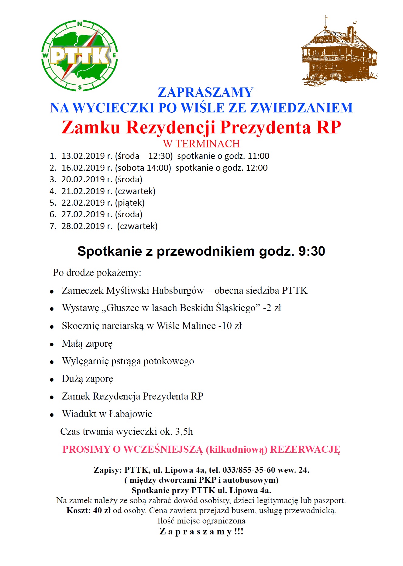 Spotkanie z przewodnikiem w siedzibie PTTK o/Wisła o godz. 9:30.