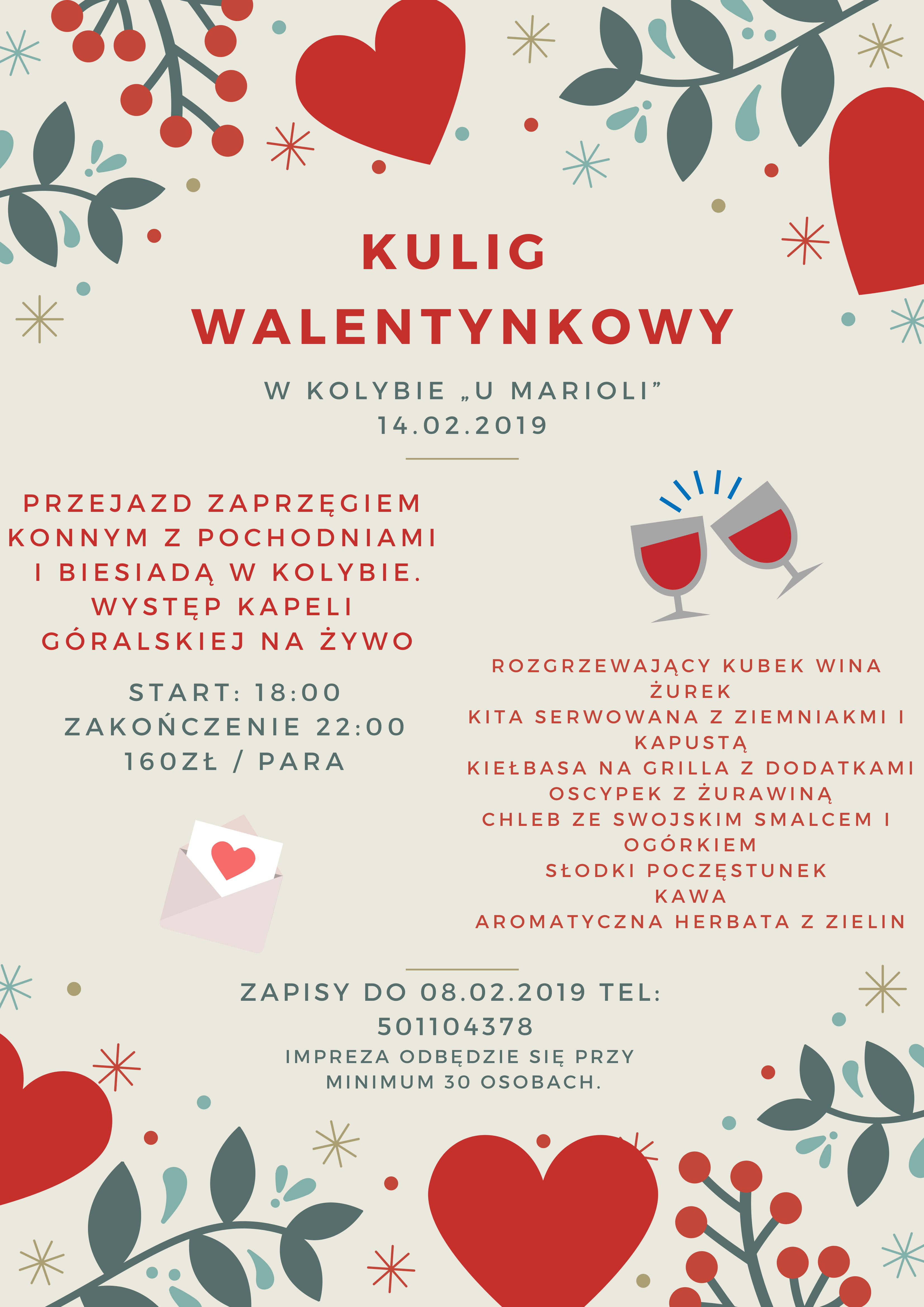 Serdecznie zapraszamy na kulig Walentynkowy 14 lutego 2019 w Kolybie u Marioli w Wiśle Czarne.