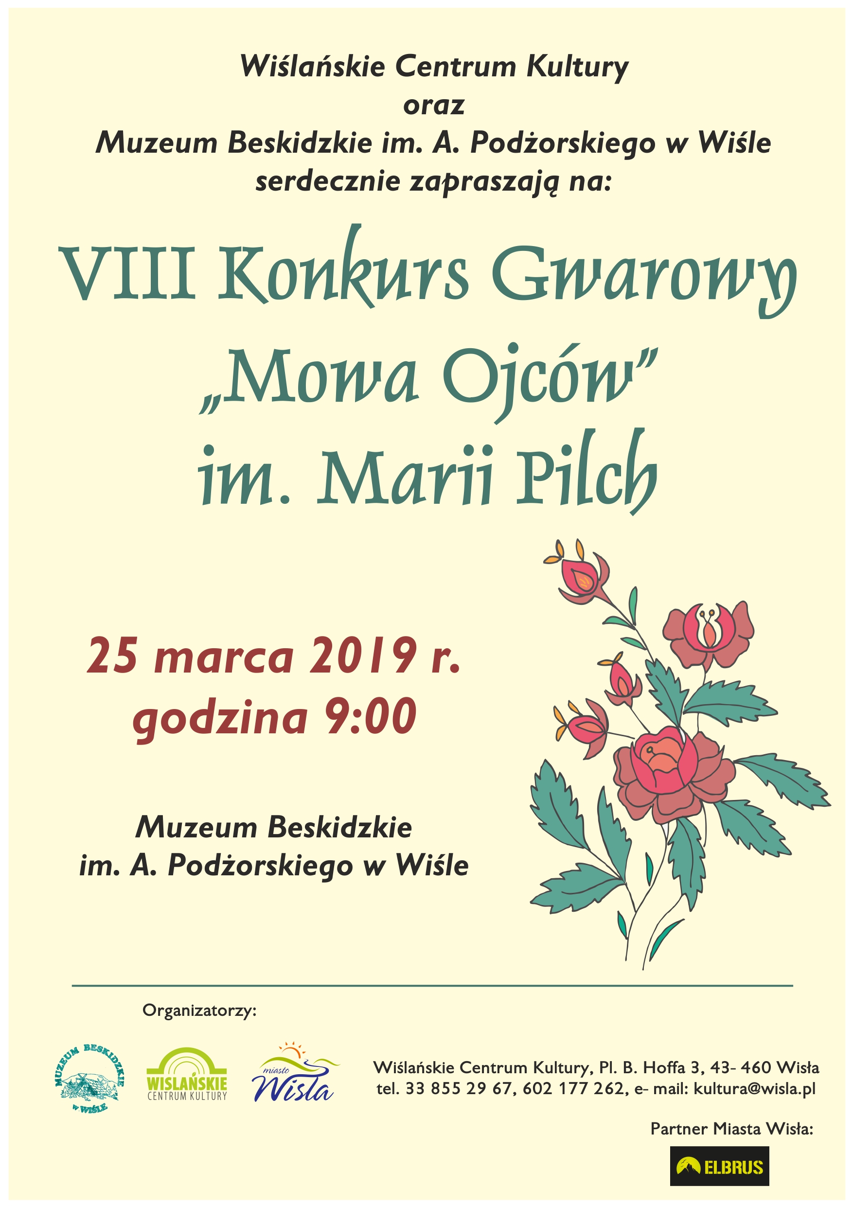 25 marca 2019 r. odbędzie się VIII Konkurs Gwarowy "Mowa Ojców" im. Marii Pilch. Konkurs ma charakter zamknięty - skierowany jest do dzieci i młodzieży z wiślańskich przedszkoli oraz szkół.
