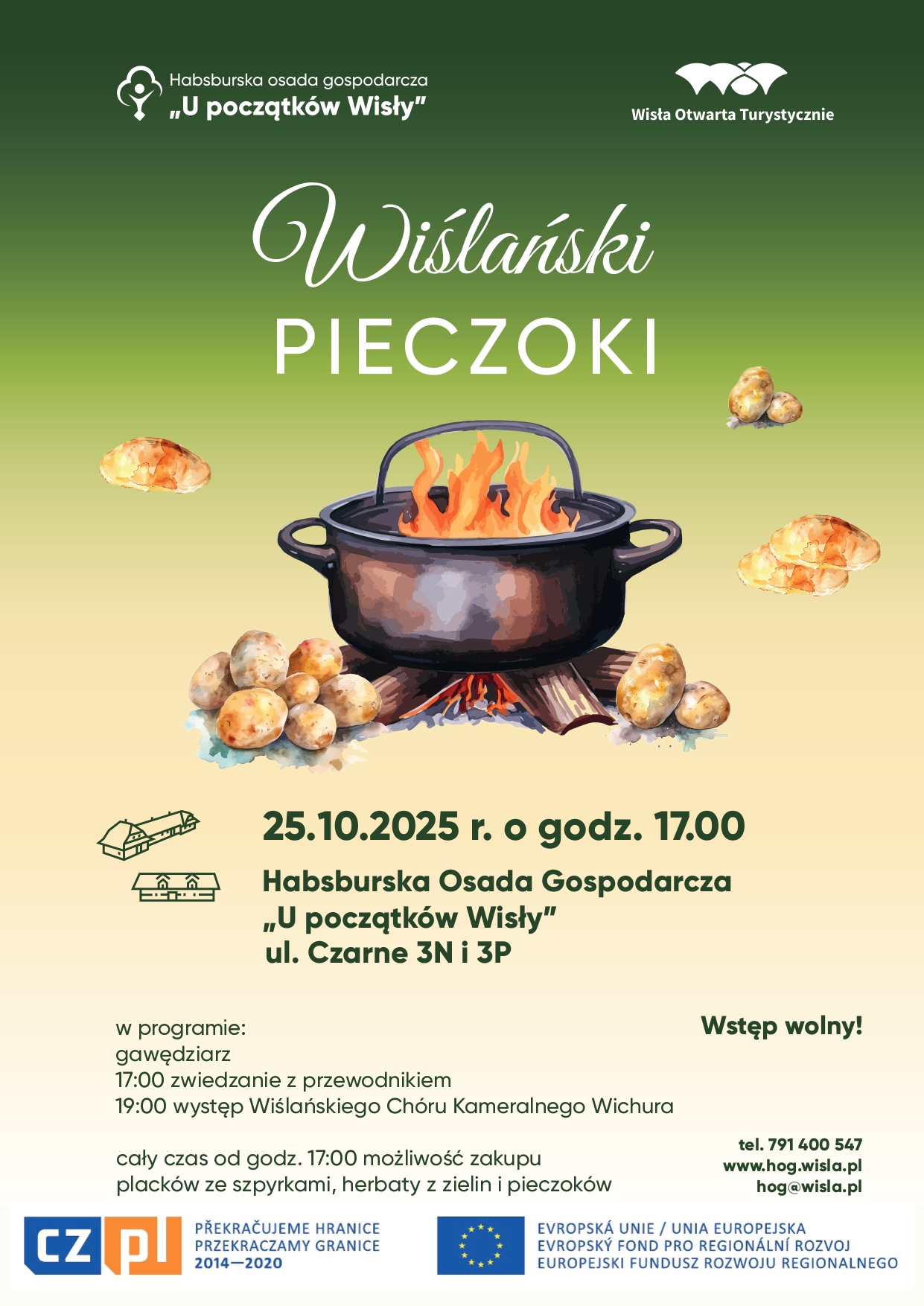 W programie zaplanowano gawędę, wspólne zwiedzanie z przewodnikiem oraz koncert Wiślańskiego Chóru Kameralnego „Wichura”. Na miejscu będzie można spróbować tradycyjnych placków ze szpyrkami, herbaty z beskidzkich ziół oraz oczywiście – pieczoków prosto z ognia.