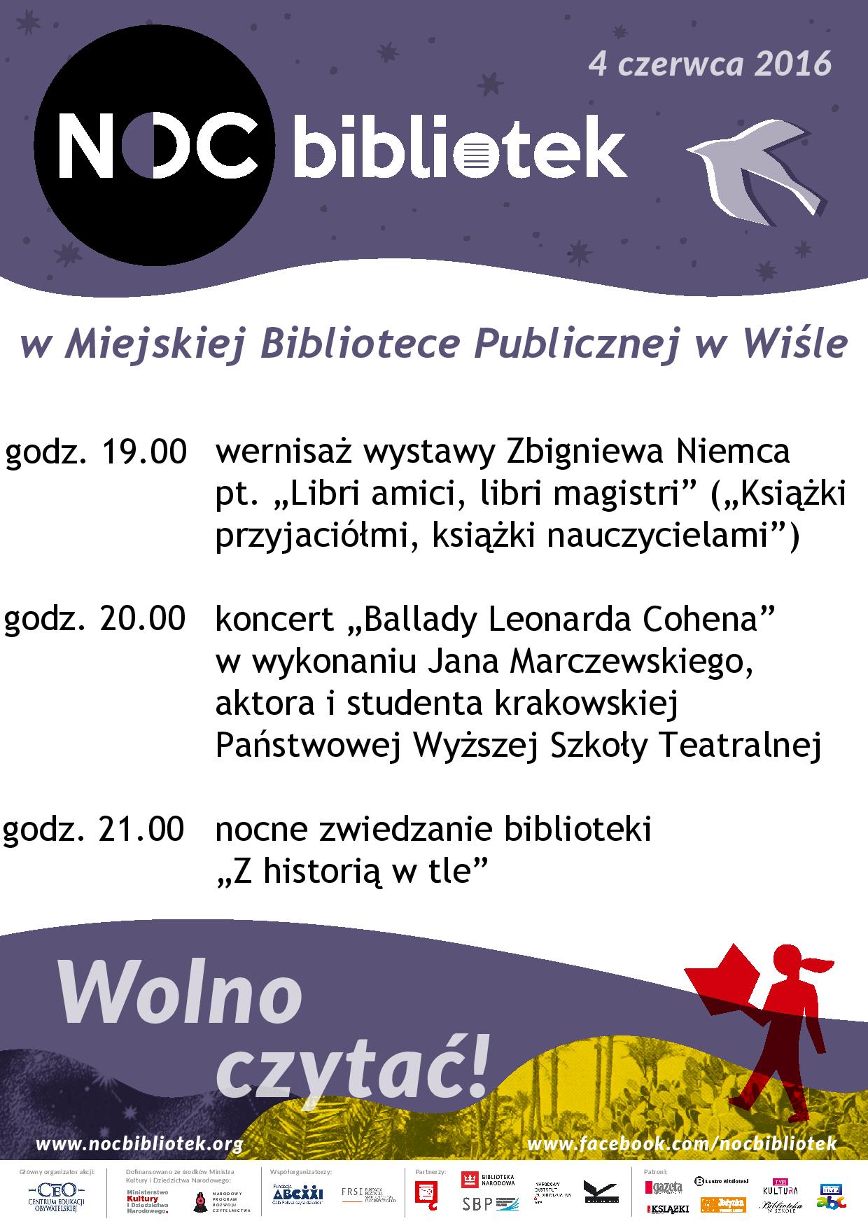 Miejska Biblioteka Publiczna im. Jana Śniegonia w Wiśle serdecznie zaprasza na NOC BIBLIOTEK, która odbędzie się 4 czerwca.