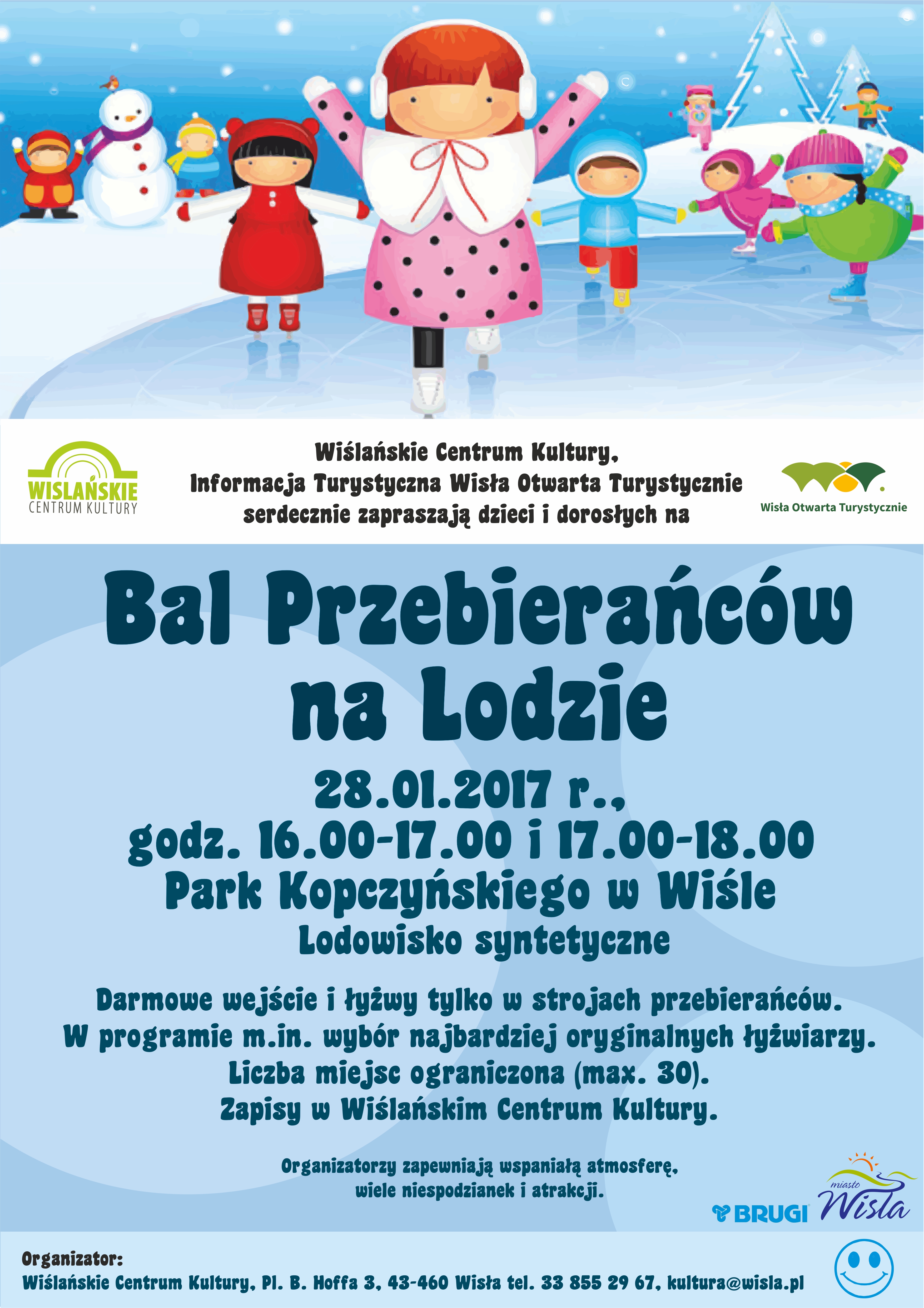 Wiślańskie Centrum Kultury, Informacja Turystyczna Wisła Otwarta Turystycznie serdecznie zapraszają dzieci i dorosłych na Bal Przebierańców na Lodzie, który odbędzie się 28 stycznia 2017r. od 16.00-17.00 i 17.00-18.00.