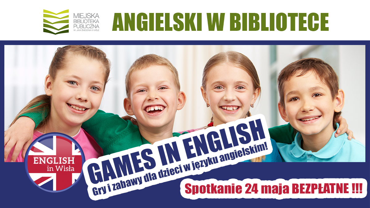 Zapraszamy na zajęcia "ANGIELSKI W BIBLIOTECE" dla dzieci w wieku 7-9 oraz 10-12 lat. English in Wisła oraz Biblioteka Publiczna w Wiśle serdecznie zapraszają dzieci na GAMES IN ENGLISH, czyli gry i zabawy w języku angielskim! Zaczynamy już 24 maja, pierwsze spotkanie jest bezpłatne.