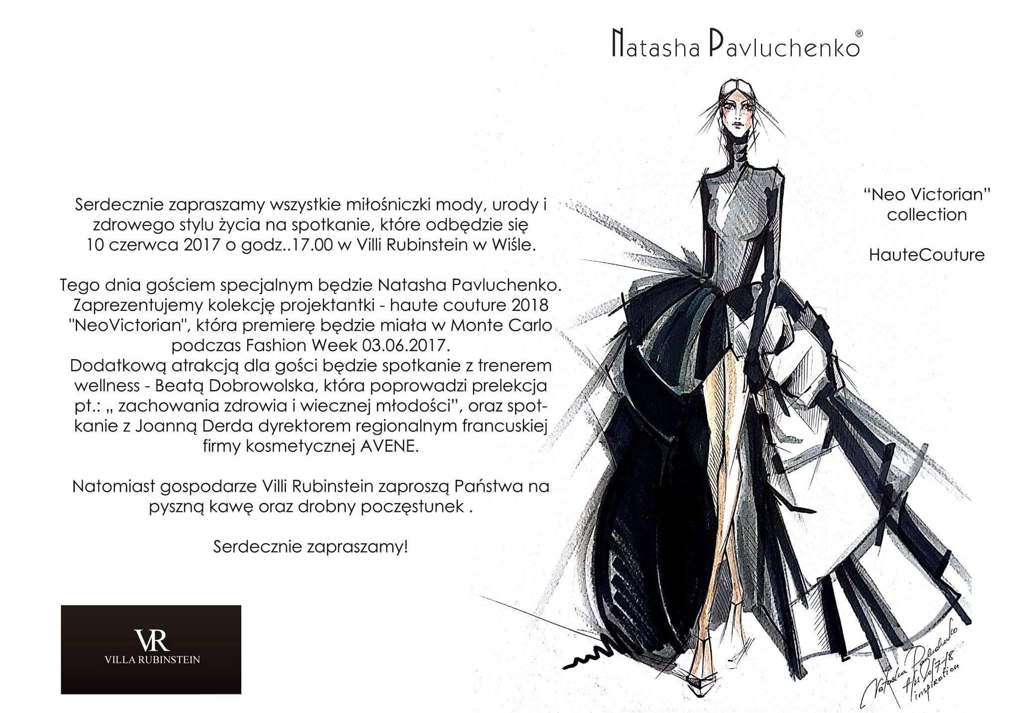 Gościem specjalnym będzie Natasha Pavluchenko. Zaprezentujemy kolekcję projektantki - haute couture 2018 "NeoVictorian", która premierę miała w Monte Carlo podczas Fashion Week 3 czerwca 2017 r.