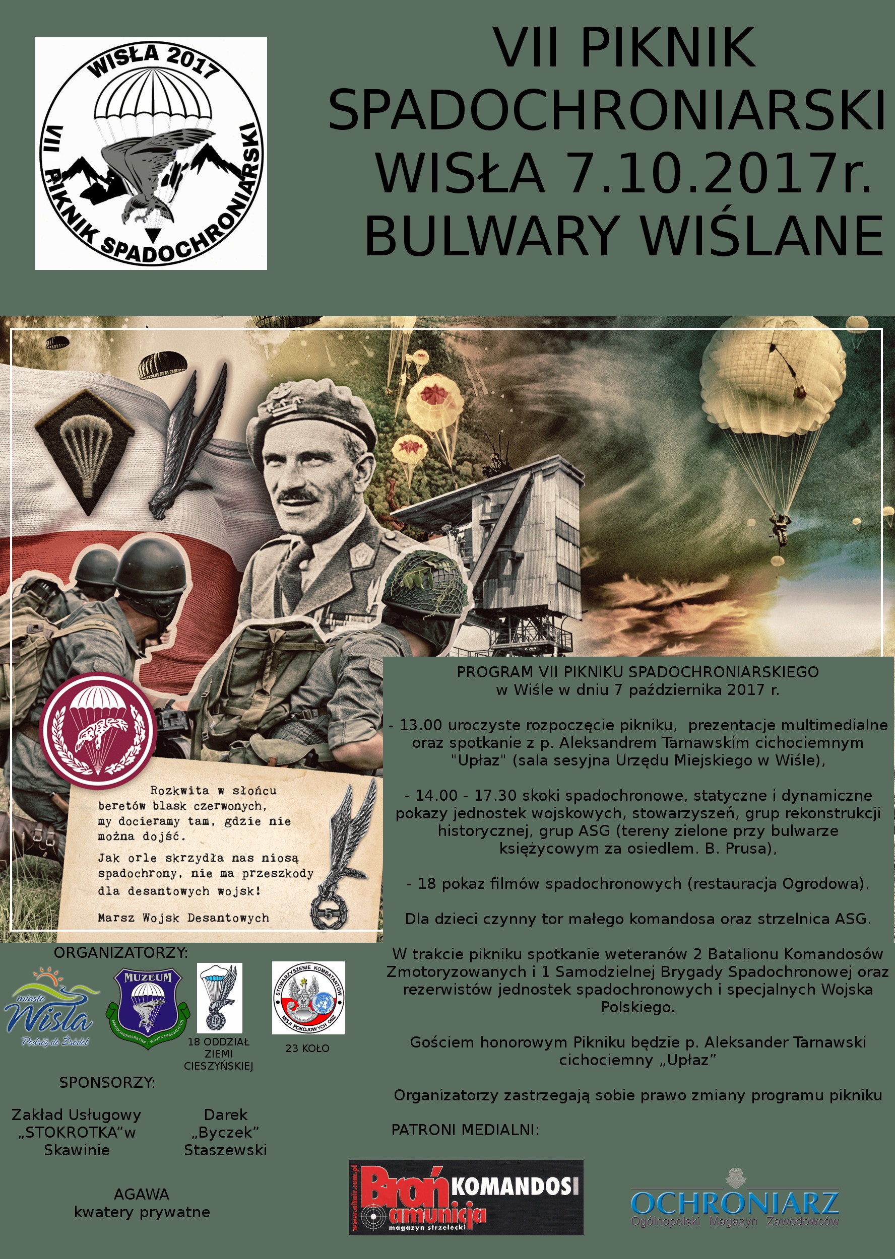 14:00 - skoki spadochronowe, dynamiczne i statyczne pokazy jednostek wojskowych, stowarzyszeń, grup rekonstrukcji historycznej oraz ASG - tereny zielone za blokami w Parku Kopczyńskiego