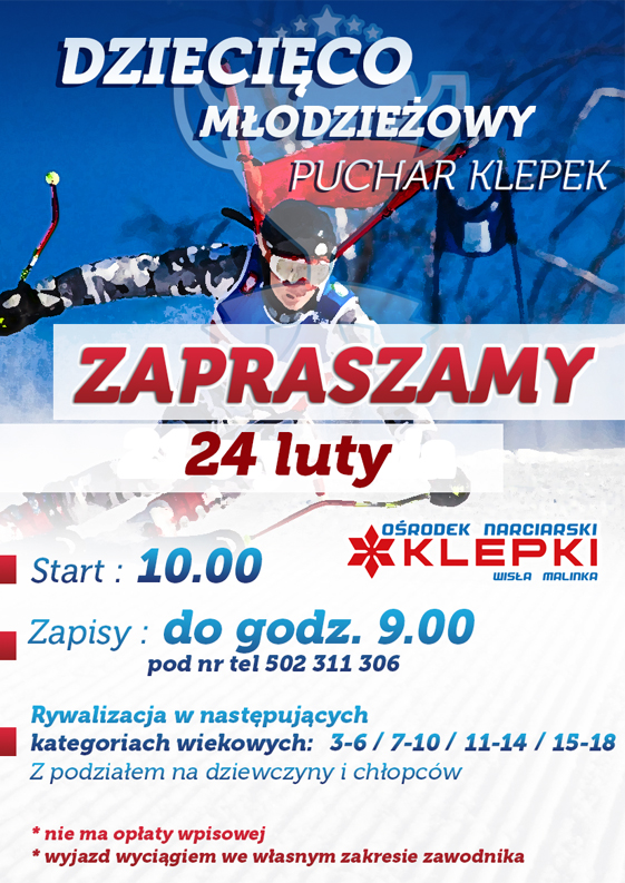 W sobotę, 24 lutego, na terenie Ośrodka Narciarskiego Klepki w Wiśle Malince odbędzie się Dziecięco-Młodzieżowy Puchar Klepek. Impreza przeznaczona jest dla dzieci i młodzieży w wieku do 18 lat.