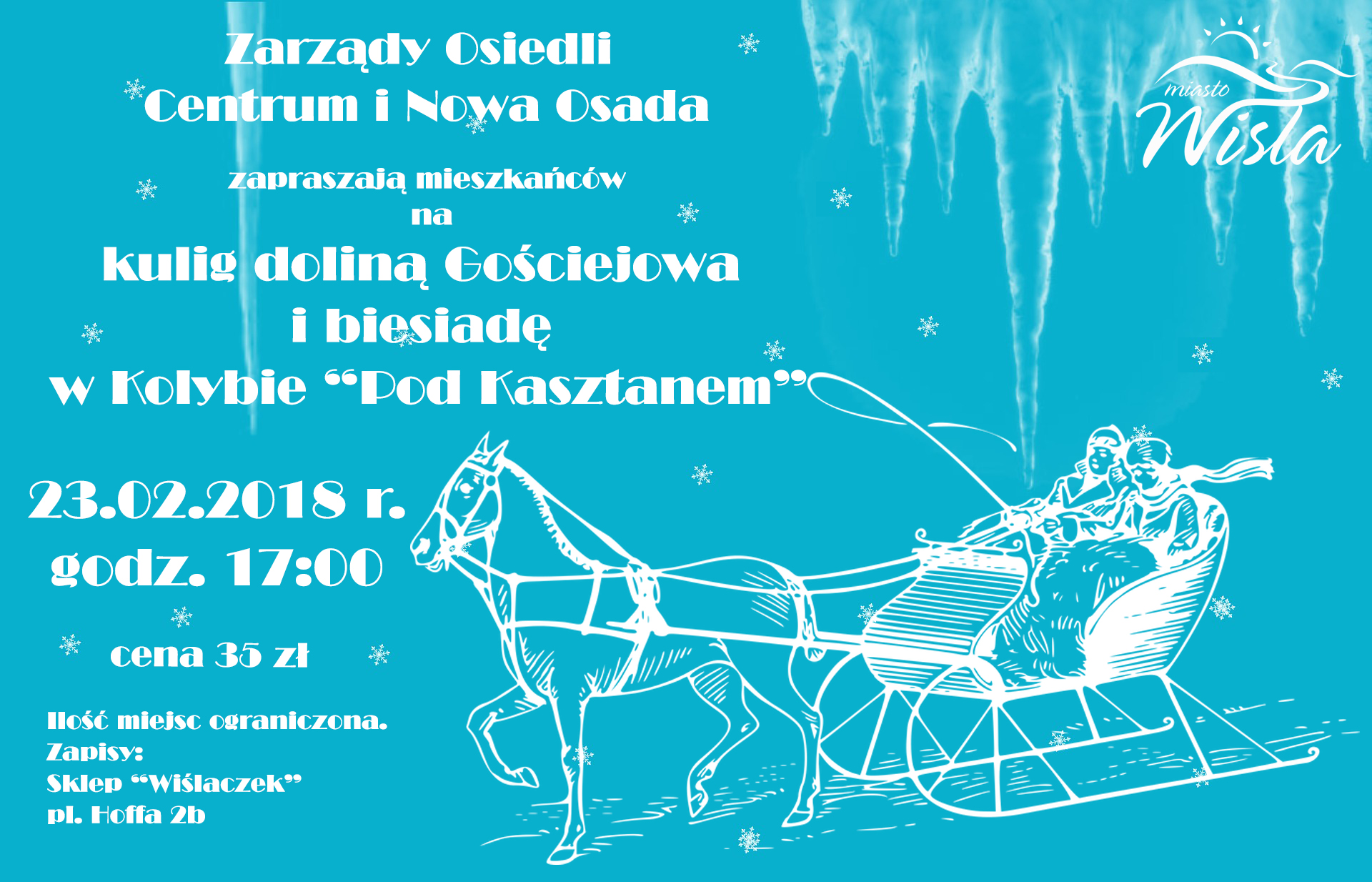 Zarządy Osiedli Centrum i Nowa Osada zapraszają mieszkańców na kulig doliną Gościejowa i biesiadę w kolybie "Pod Kasztanem".