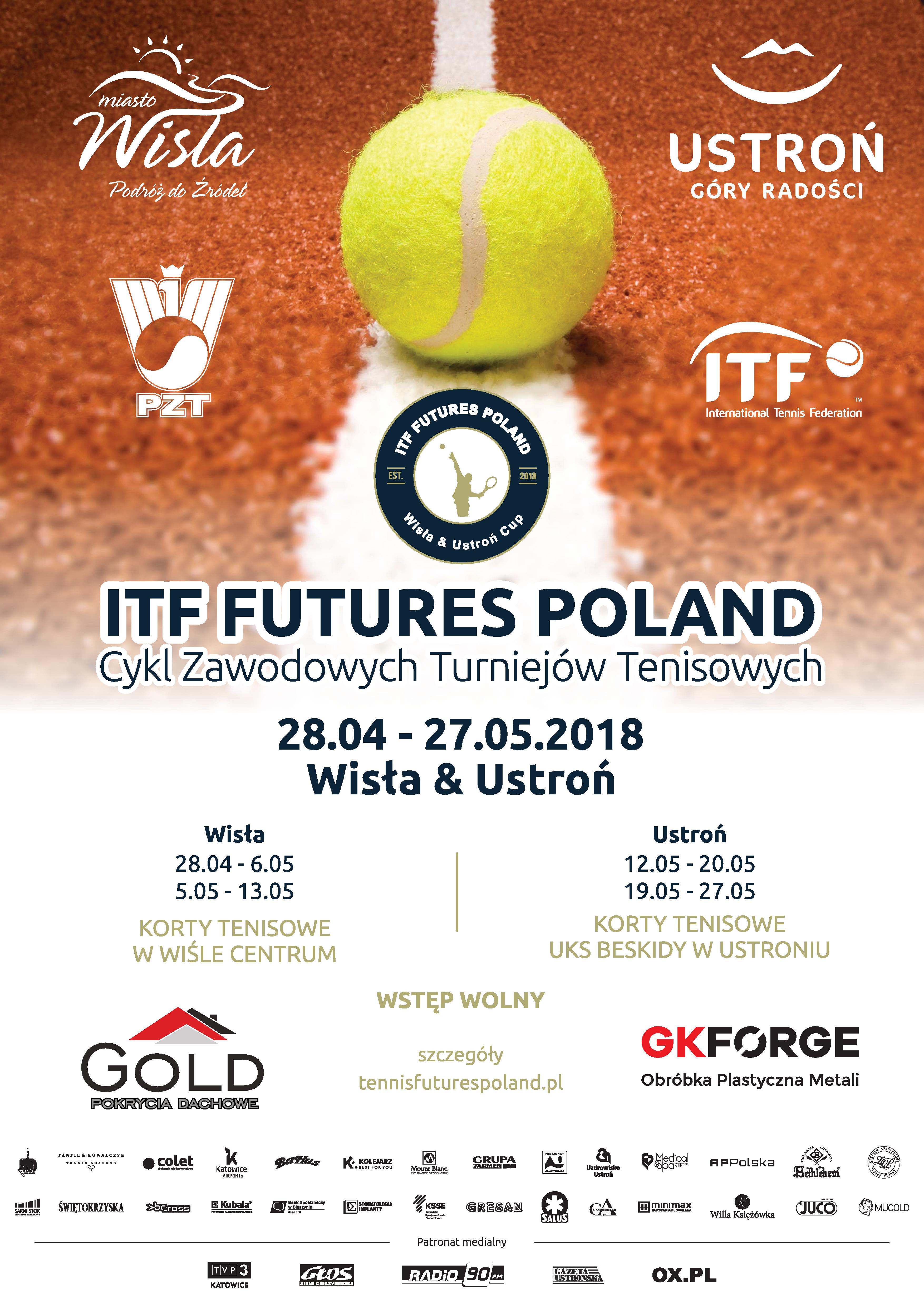05.05 - 06.05 eliminacje do turnieju F2 Gold Cup na kortach Wisła Centrum i Jonidło w godz 9:00 do ostatniego meczu (przewidywana ilość to 56 spotkań - w turnieju eliminacyjnym startuje 64 zawodników, z których 8 awansuje do turnieju głównego);