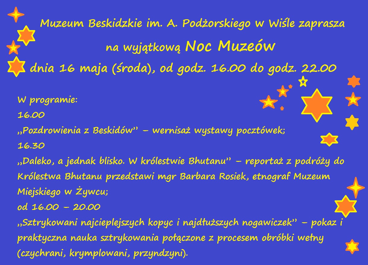 Muzeum Beskidzkie im. A. Podżorskiego w Wiśle zaprasza na wyjątkową Noc Muzeów.