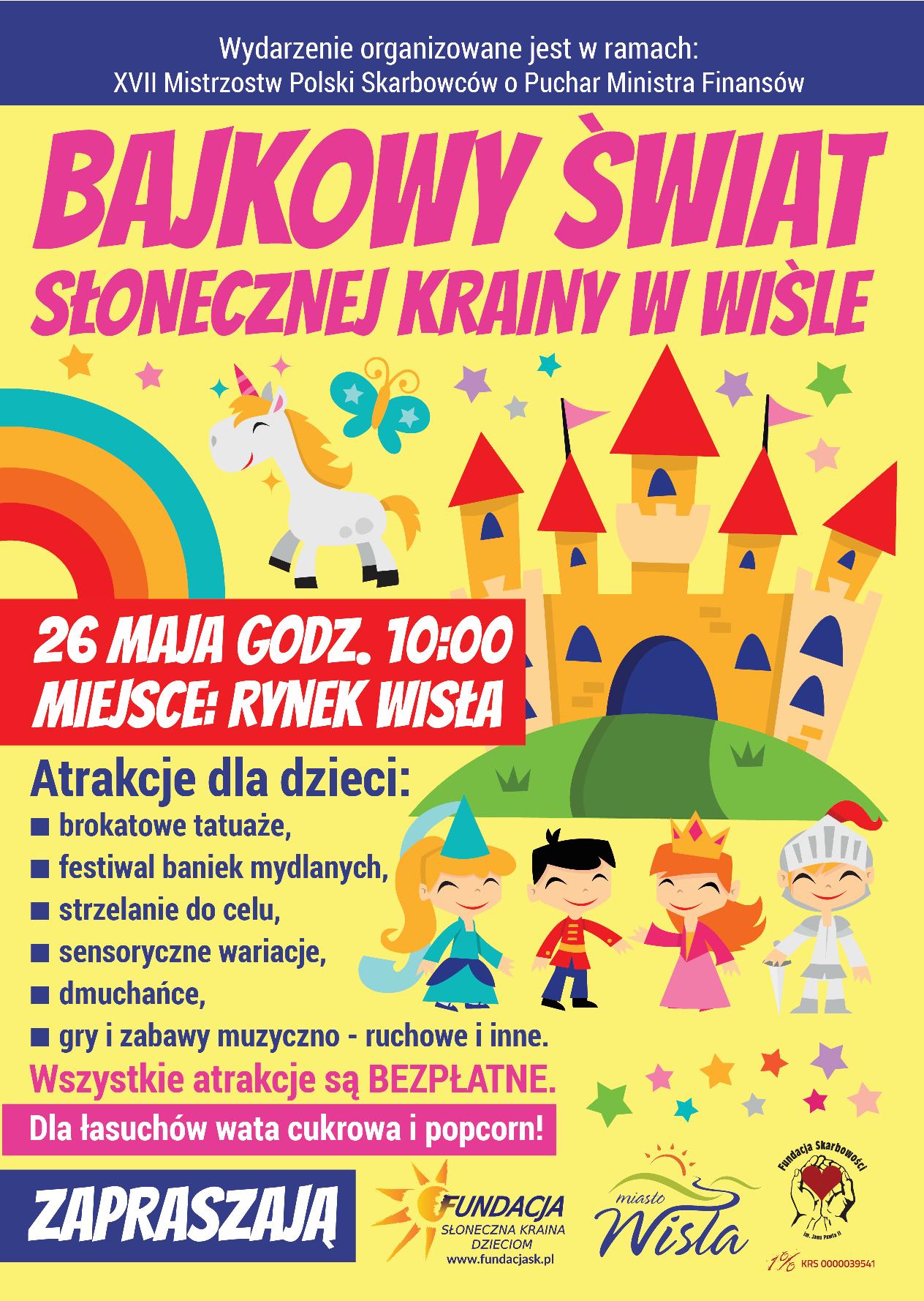 26 maja zapraszamy na imprezę dla dzieci "Bajkowy Świat Słonecznej Krainy w Wiśle". Początek o godz. 10:00.