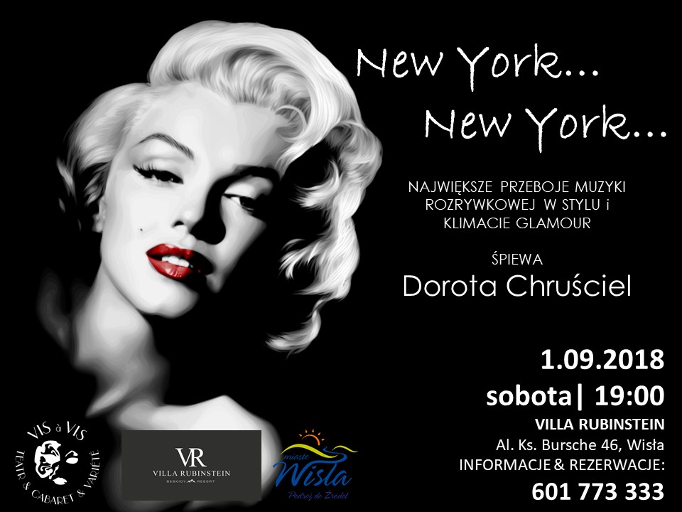 Teatr Vis a Vis w Villi Rubinstein prezentuje: "NEW YORK... NEW YORK..." recital filmowo-musicalowy - największe przeboje muzyki rozrywkowej śpiewa Dorota Chruściel.