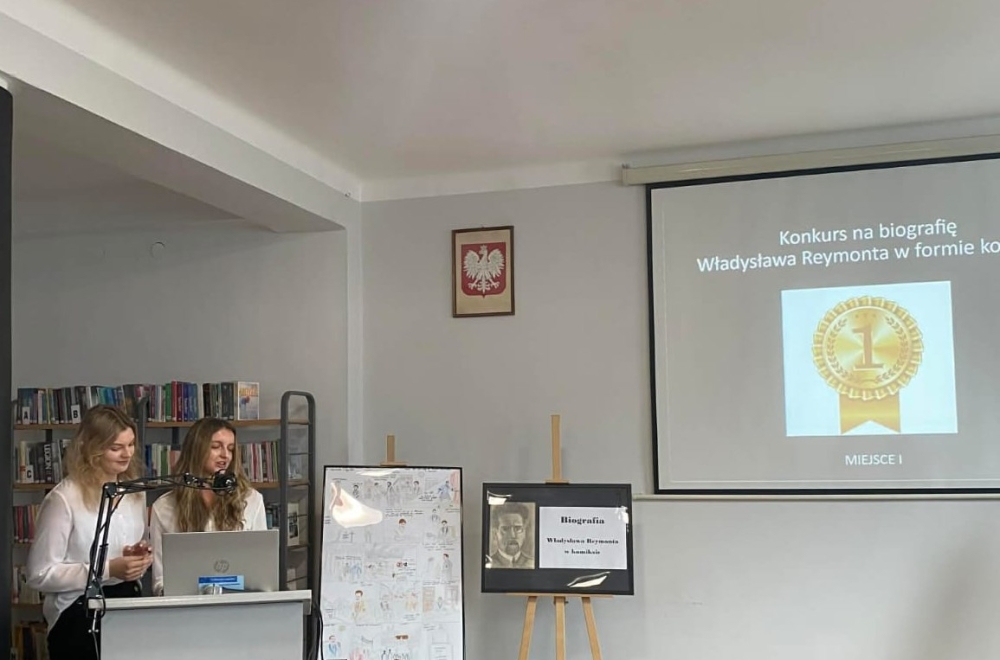 Panie z Biblioteki Szkolnej: Gabriela Potoczek-Kantor oraz Iwona Byrtus przygotowały i przeprowadziły Konkurs „Biografia Reymonta w Komiksie”. Wśród wielu ciekawych prac organizatorzy przyznali: