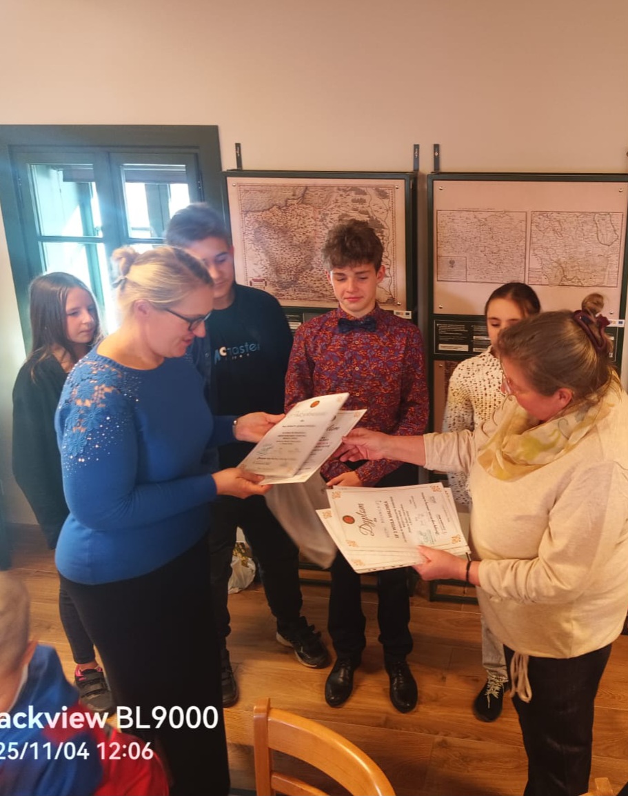 W przerwie uczestnicy mieli okazję do szczegółowego zapoznania się z ekspozycją Habsburskiej Osady Gospodarczej, którą poprowadziła Pani Beata Mendrek. Wszyscy uczestnicy otrzymali dyplomy za udział w konkursie i drobne upominki, zwycięskie szkoły nagrody ufundowane przez Habsburską Osadę Gospodarczą, Towarzystwo Miłośników Wisły i Muzeum Magicznego Realizmu „Ochorowiczówka”. Posiłek zapewniła Piekarnia Nowa Osada i Pan Leszek Szalbot, firma „Drewutnia”, a przywiozła i odwiozła uczestników do szkół firma „Rapido” Jarosława Wisełki.