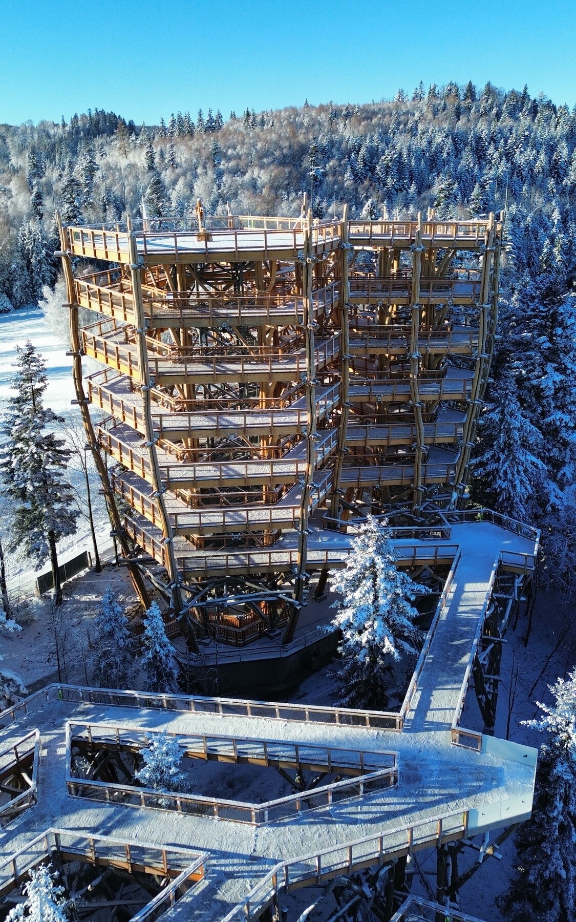Od dziś mieszkańcy i turyści mogą korzystać z nowej atrakcji w samym sercu Wisły – drewnianej wieży widokowej położonej przy górnej stacji kolei linowej Skolnity.