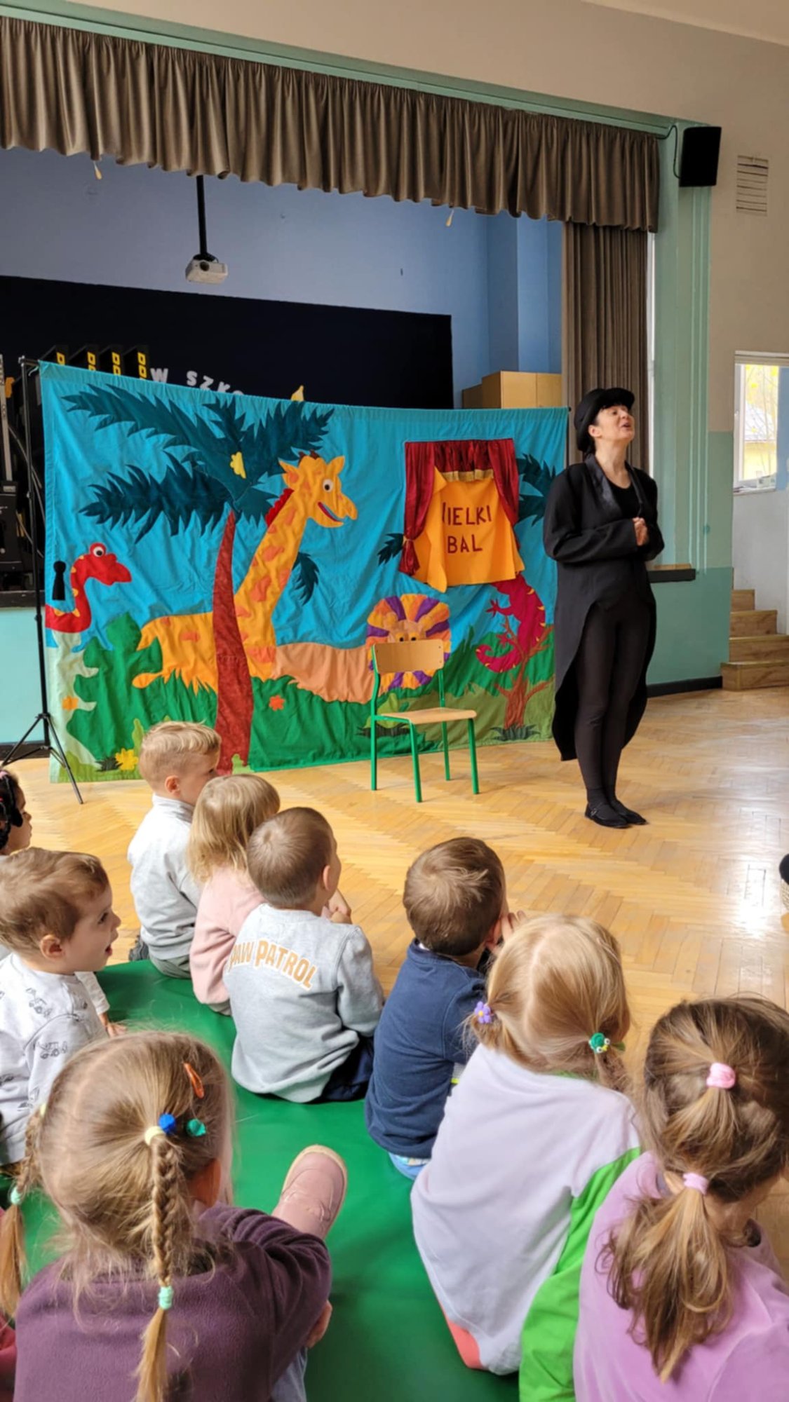 Dnia 27 października 2025 r. w szkole dla grup przedszkolnych ( 3,4,5 i 6 latków) odbyło się przedstawienie teatrzyku Skrzat pt „ Z kulturą na Ty”. Aktorzy w ciekawy i zabawny sposób przypomnieli dzieciom zasady kulturalnego zachowania- m. in. używanie zwrotów grzecznościowych, szacunku wobec innych oraz dbanie o porządek. Przedszkolaki z dużym zainteresowaniem oglądały występ, chętnie uczestniczyły w dialogach. Spotkanie było wartościową lekcją dobrych manier połączoną z radosną zabawą.