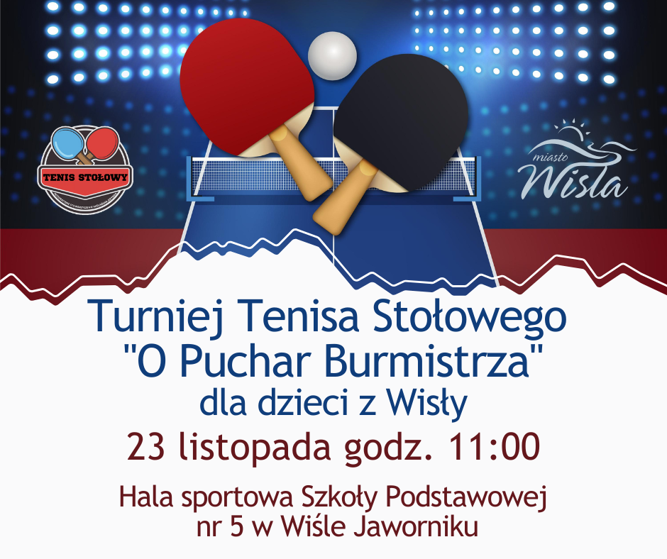 Zapraszamy dzieci ze szkół podstawowych z terenu Gminy Wisła do udziału w Turnieju Tenisa Stołowego "O Puchar Burmistrza Miasta Wisła".