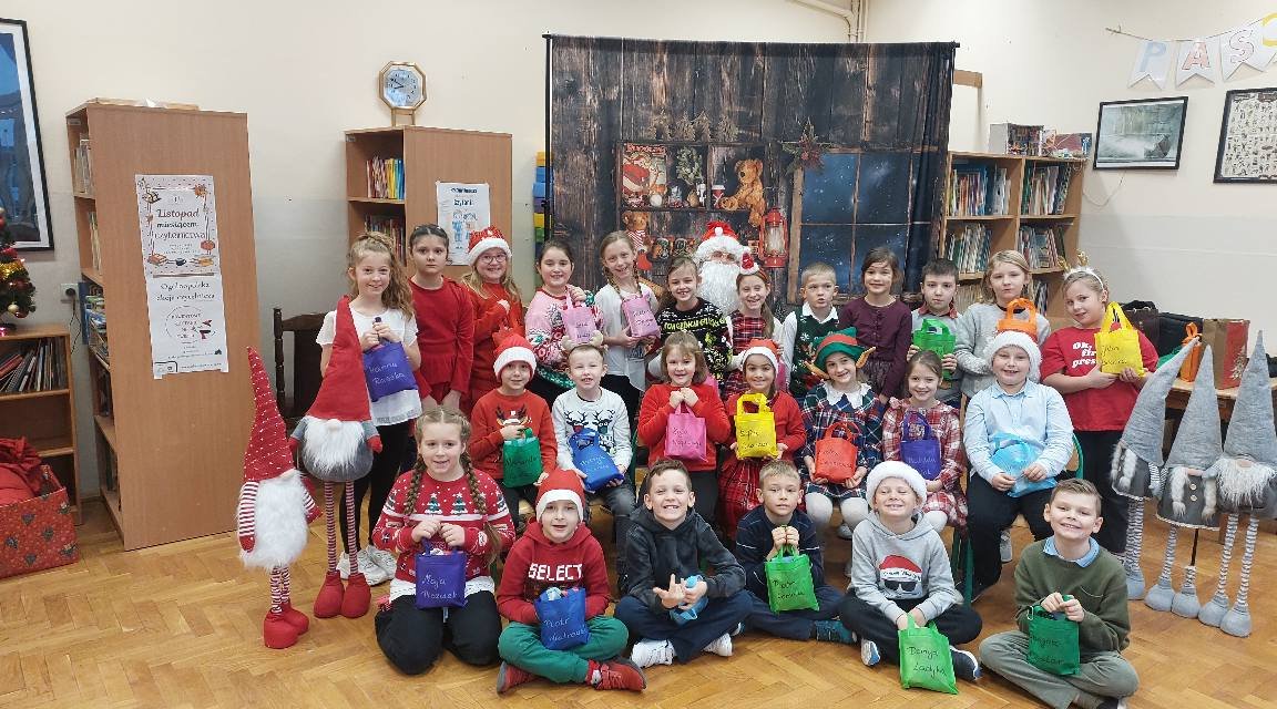 Mikołajki w naszej szkole to wydarzenie w prawdziwie świątecznym nastroju. Uczniów klas młodszych odwiedził Święty Mikołaj, który wręczył każdemu  prezent i zapozował z nimi do pamiątkowego zdjęcia wykonanego przez fotografa Szymon Brodacki. Po spotkaniu dzieci udały się do swoich sal, gdzie czekało na nie świąteczne kino. Nie zabrakło również słodkich przekąsek i świeżego popcornu, który towarzyszył filmowym seansom. Uczniowie z radością oglądali swoje prezenty, zajadali smakołyki i wspólnie przeżywali mikołajkowe emocje. Serdecznie dziękujemy Radzie Rodziców za przekazane fundusze na organizację poczęstunku. Ten dzień na długo zostanie w pamięci naszych najmłodszych. Do starszaków zawitał zaś Mikołaj ze swym elfim zastępem, w towarzystwie reniferów, aniołka i diabełka. Co niektórym– ku ich uciesze, trafiła się nawet rózga!